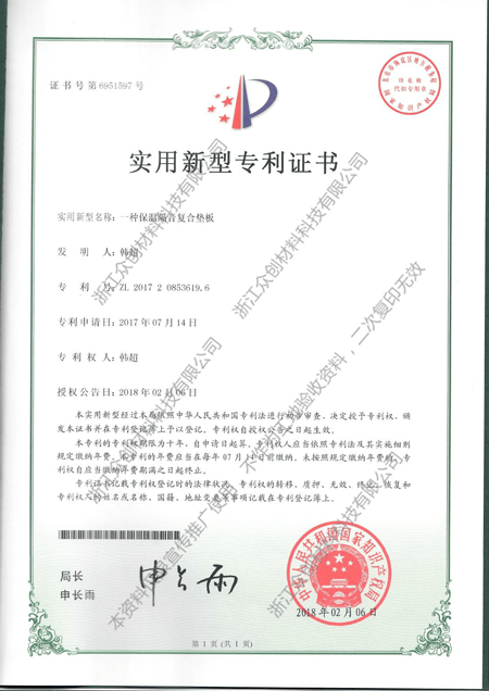 目前,浙江眾創材料科技有限公司已獲得: