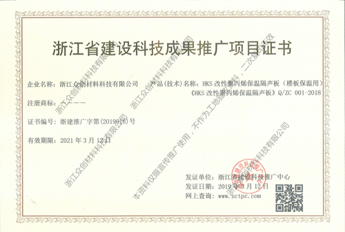 浙江省建設科技推廣項目證書
